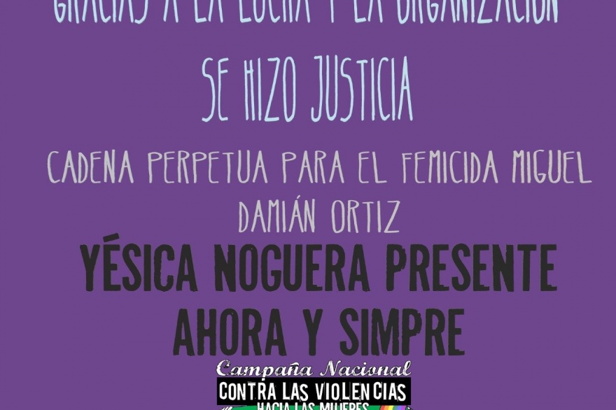 “Yésica tenía 22 años y era mamá de dos hijxs. En los testimonios escuchados durante el debate oral y público quedó en evidencia que Yésica padeció violencia sexual, psicológica y física por parte de Miguel Damián Ortiz.