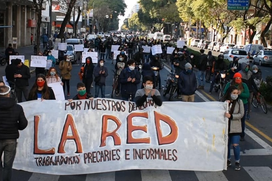 Hoy a primeras horas de la mañana en la ciudad de Rosario, trabajadorxs precarizados que integran el colectivo " LA RED" realizaron una movilización a las puertas del Ministerio de Trabajo, la primera en la ciudad en un contexto de aislamiento social. Se concentraron en la esquina de Pellegrini y Mitre para desde allí llegar en caravana hasta dicha institución.