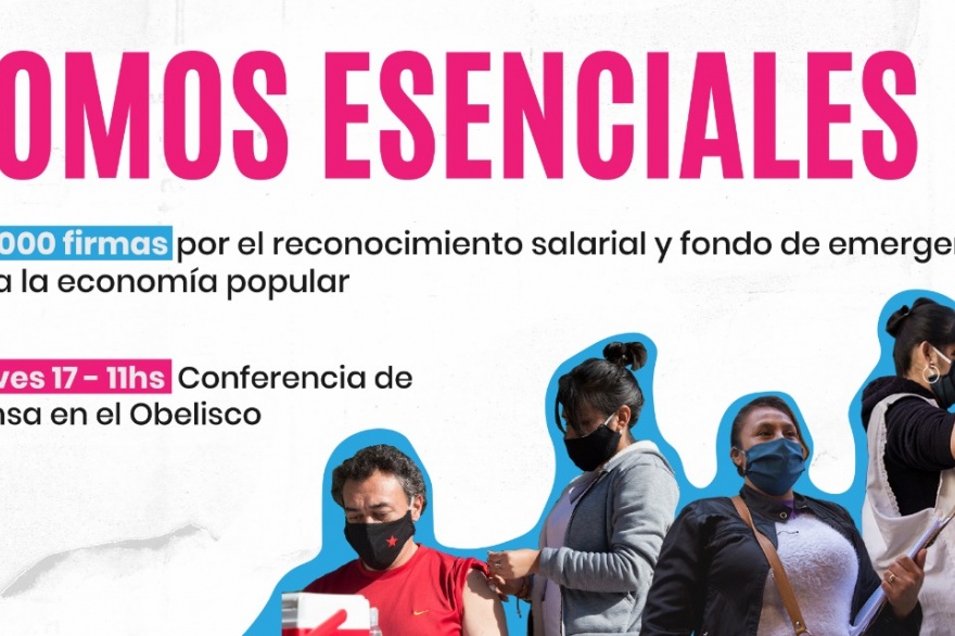 Las organizaciones que llevan adelante la Campaña Somos Esenciales realizarán una Conferencia de Prensa en el Obelisco este jueves 17 de septiembre a las 11 hs. Por el reconocimiento de las tareas comunitarias y por la creación de un fondo de emergencia para la economía popular, representantes de las distintas organizaciones sociales presentarán la Carta Abierta al Gobierno de la Ciudad de Buenos Aires y se lanzará una campaña de junta de firmas.