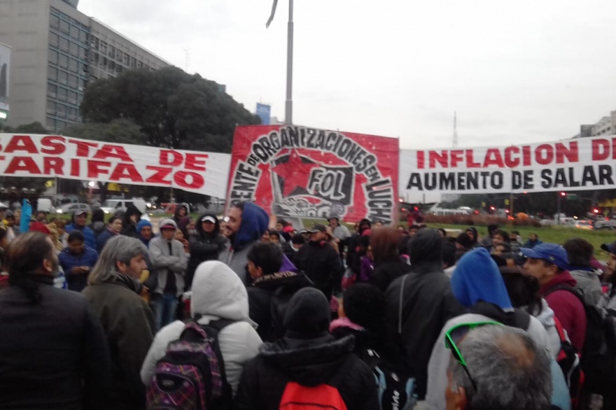 Cerca del mediodía del miércoles distintas organizaciones sociales comenzaron a concentrarse frente al obelisco para iniciar una recorrida por distintos ministerios y presentar sus pliegos reivindicativos. Luego ya entrada la tarde volvieron a confluir en este mismo punto con un acto político contra los tarifazos, contra el acuerdo con el FMI, por puestos de trabajo y en reclamo de un aumento salarial del 30% equivalente a la inflación real.