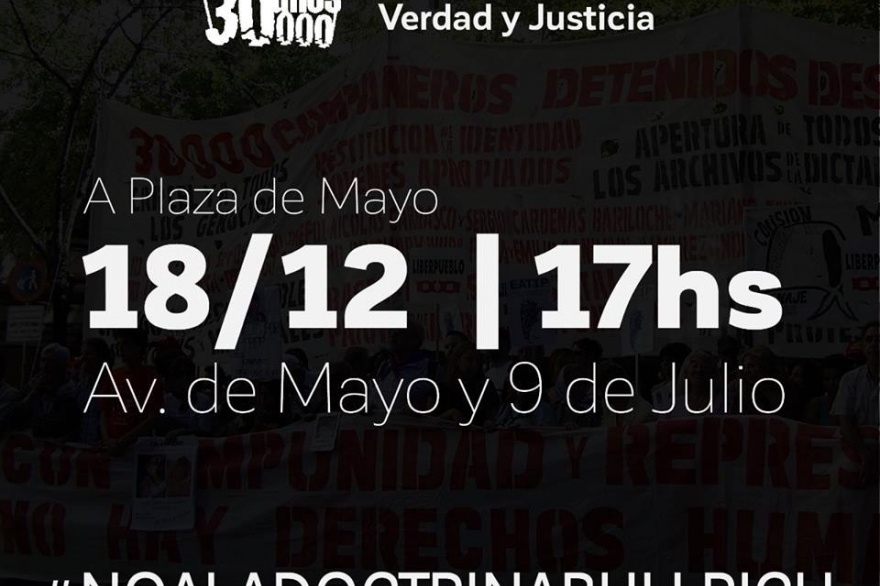 El ENCUENTRO MEMORIA VERDAD Y JUSTICIA convoca a movilizarse a Plaza de Mayo el martes 18 de diciembre a las 17:00, para decir:
