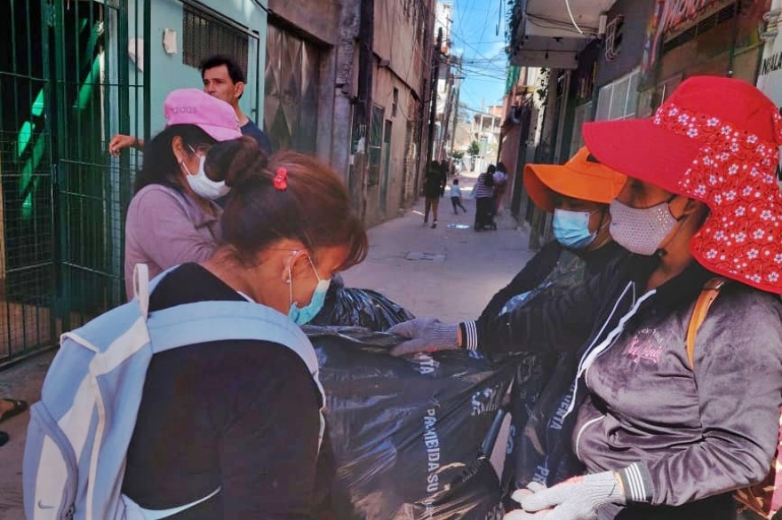 Es la primera vez que en el barrio se realiza esta actividad y al mismo tiempo desde el centro comunitario del FOL Barrio Lugano Infinito (BLI) sus integrantes trabajan en cuadrilla de recolección, tan necesaria como apunta Mirta. “La diferencia con otras cuadrillas es que ellos trabajan en las calles y nosotros en cada casa. Otras cuadrillas hacen el barrido, es otro tipo de trabajo. Siempre trabajamos yendo a las casas con barbijos, guantes, lo necesario para no manipular las cosas y nos enfermemos. Ya nos conocen y nos esperan preparados, nos gustó bastante porque la gente se copa y a eso se le suma el compañerismo, tenemos dos cuadrillas y nos organizamos bastante bien”.