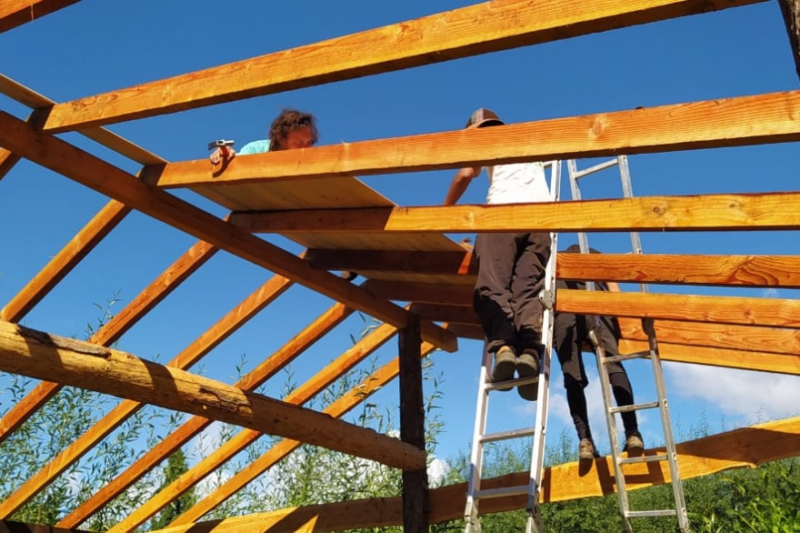 Con mucha alegría les integrantes del FOL en El Bolsón, provincia de Río Negro, comenzaron esta mañana a techar el futuro espacio comunitario comedor y merienda Mapuco y espacio cultural y biblioteca Pichileufu, que hoy asiste a casi 100 familias en la comunidad.