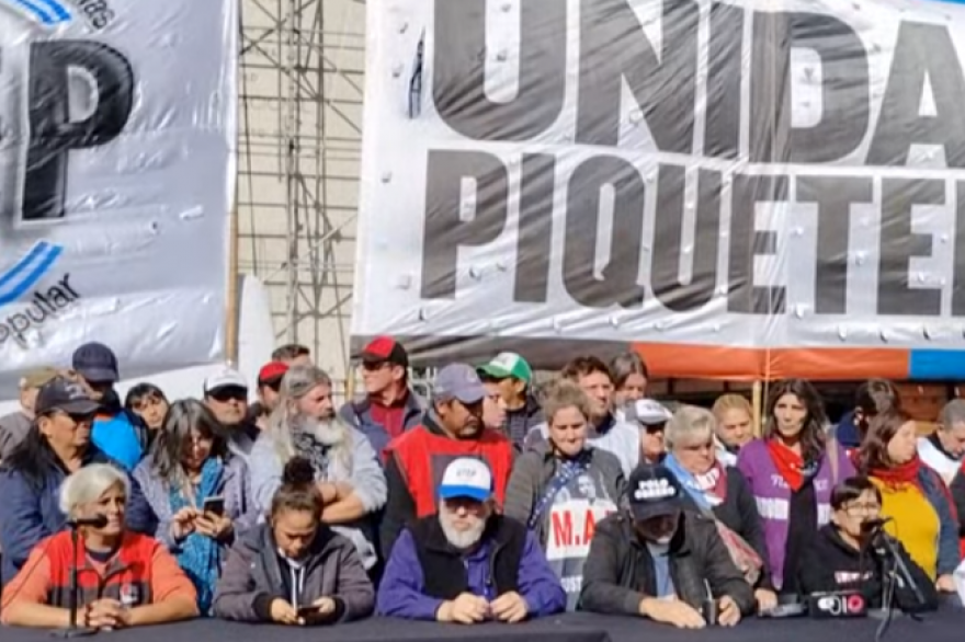 En la conferencia de prensa realizada en el Obelisco, la Unidad Piquetera y la UTEP anunciaron una medida de lucha conjunta que se realizará el próximo jueves 18 de mayo en el Ministerio de Desarrollo Social de la Nación.