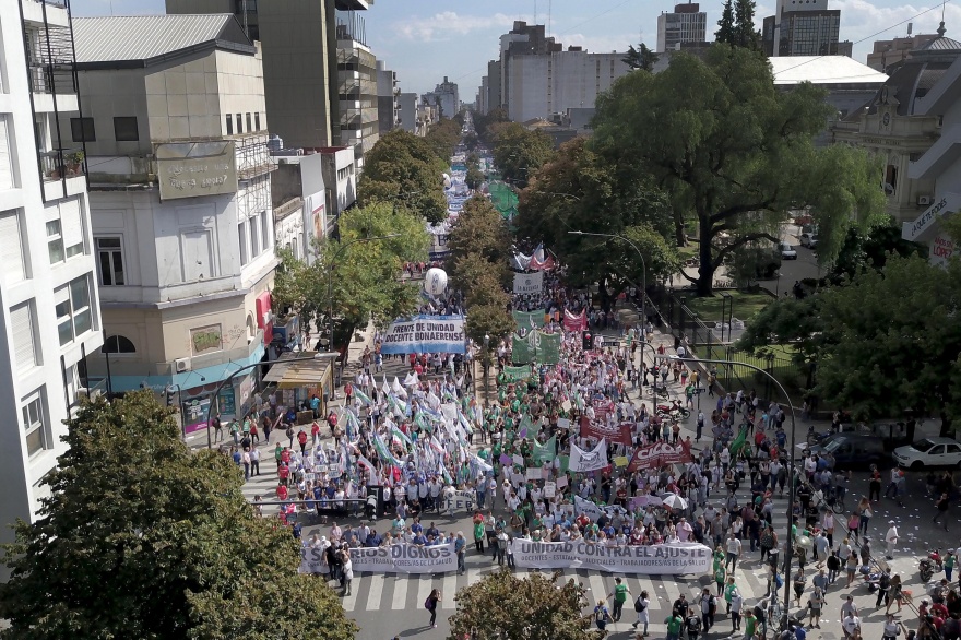 La convocatoria al paro y movilización realizada por ATE (estatales), Suteba (docentes), AJB (judiciales) y Cicop (médicos) tuvo una fuerte adhesión y alrededor de 60 mil trabajadores de distintos sectores se hicieron presentes en la calle. Los principales puntos de reclamo fueron el rechazo al ofrecimiento de paritarias por debajo del nivel de inflación, contra los despidos, en defensa de las fuentes laborales, y contra el vaciamiento de la escuela pública.