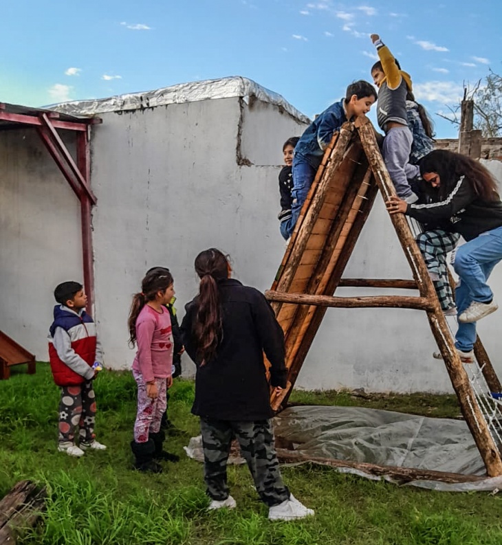 El centro este año cumple 20 años de existencia, y gracias a mucha lucha y organización se logró construir una plaza para que disfruten las niñeces que se acercan en búsqueda de un espacio de afecto y juego, en un contexto de hambre y precariedad. El sábado 24 de mayo se inauguró un nuevo juego en esa plaza. Sabrina, educadora del lugar, nos cuenta que “El Escalador, fue un juego que pidieron los chicxs, que querían tener. En la jornada se hicieron diferentes juegos, y desafíos para acceder al juego. Terminamos comiendo empanadas”.